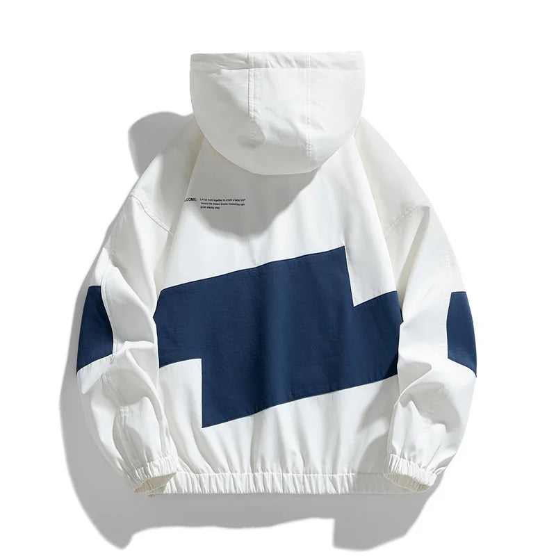 This sleek windbreaker combines a classic color palette with cuffed sleeves for a modern, stylish look that’s both timeless and effortlessly functional.