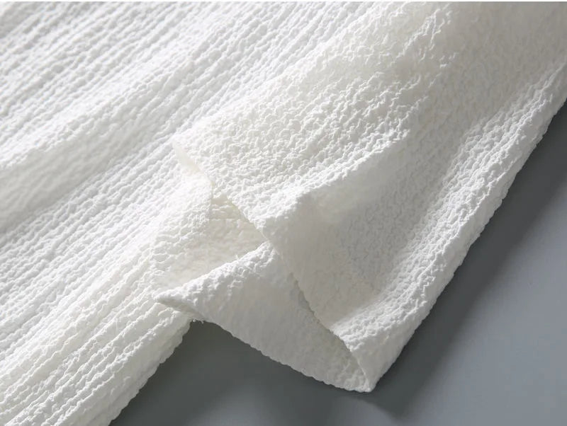 Breeze through summer in this effortlessly elegant linen set, designed for hot days when you still want to look polished. Made from 100% linen, the short-sleeve shirt and tapered drawstring pants offer breathable comfort without compromising on refinement. The fabric’s soft structure keeps it light and breathable without letting others see through.