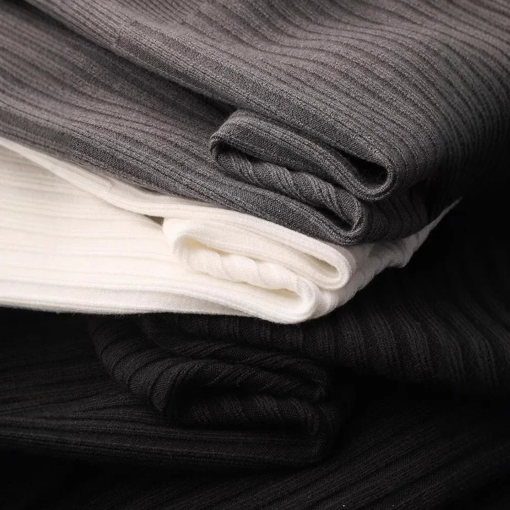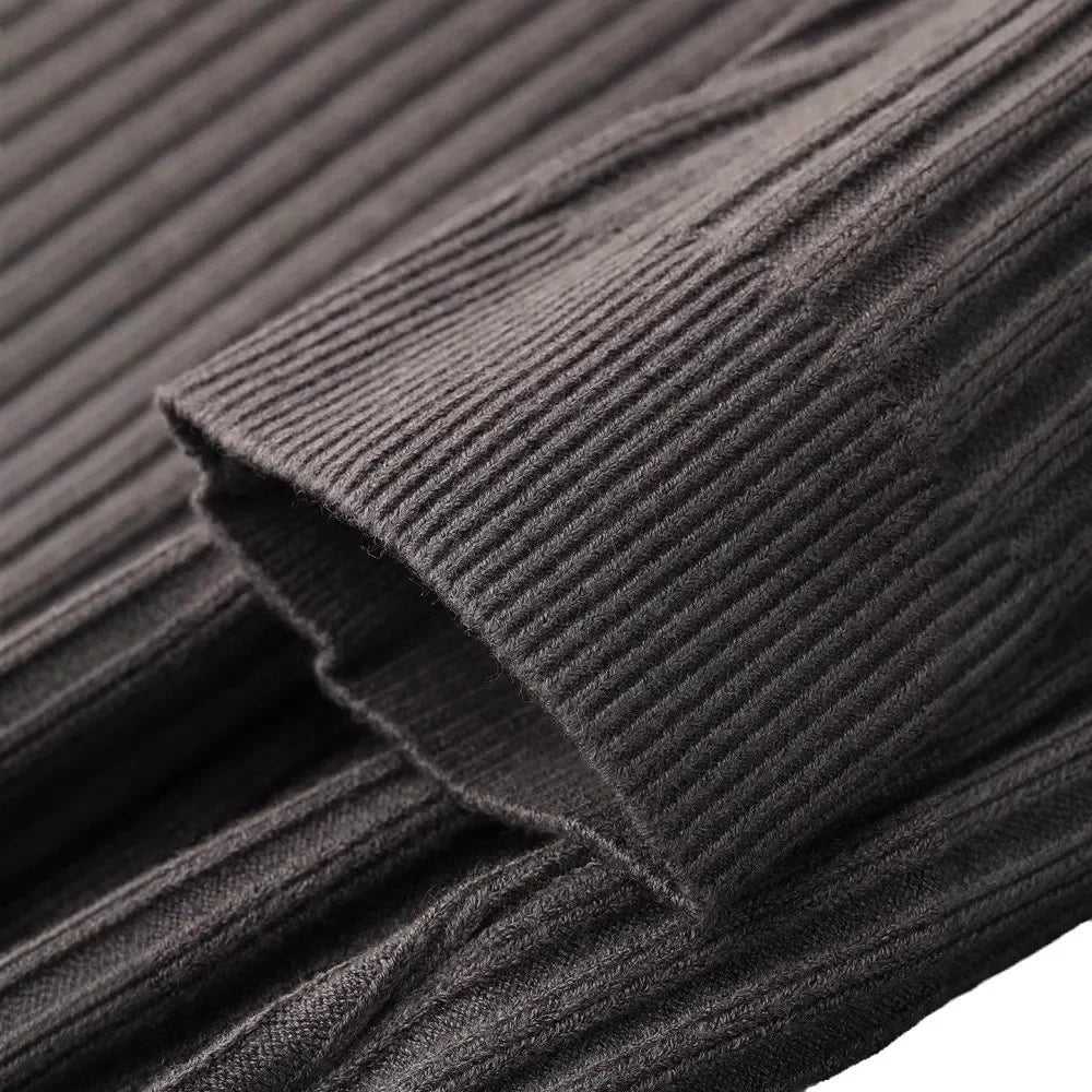 A study in subtle sophistication, this ribbed knit polo blurs the line between luxury and restraint. Its velvety-soft construction wraps the body in quiet comfort, while the architectural ribbing lends a composed elegance suited for cooler months. The sharply tailored collar and polished zip placket speak to refined sensibilities.