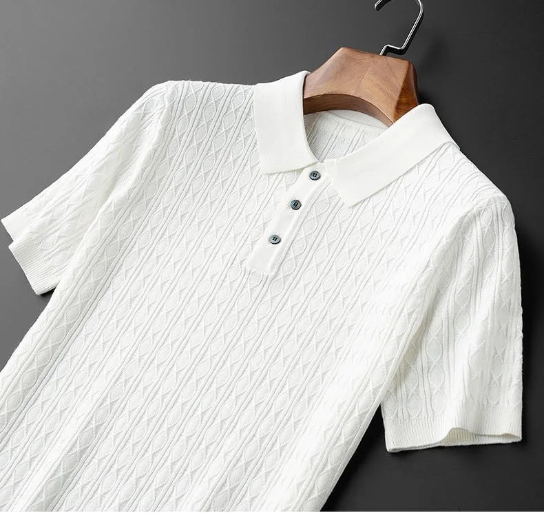A masterclass in texture and taste. This waffle-knit jacquard polo blends traditional craftsmanship with modern sophistication, offering a distinguished silhouette that feels as refined as it looks. Designed for those who appreciate subtle detail and timeless style—this piece doesn’t speak loudly, but it says everything.